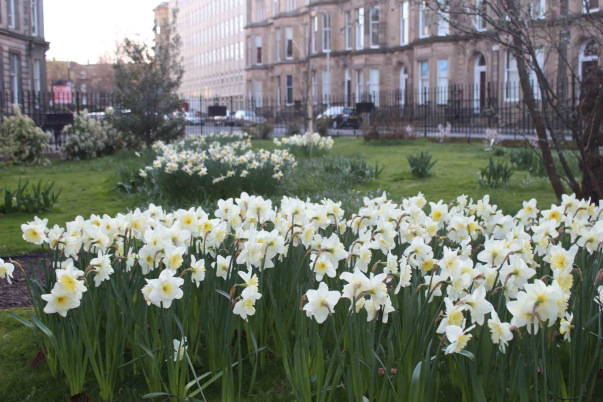 Daffodils and tulip bulbs coming into bloom in Spring 2017. These high quality bulbs kindly donated (in considerable volume) by John & Margaret Milne.