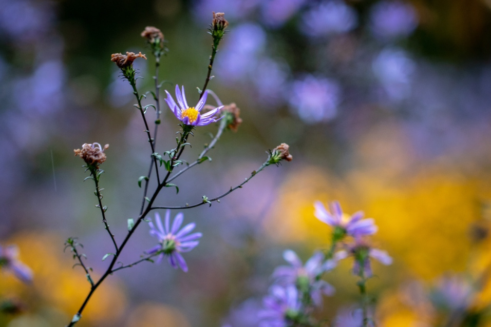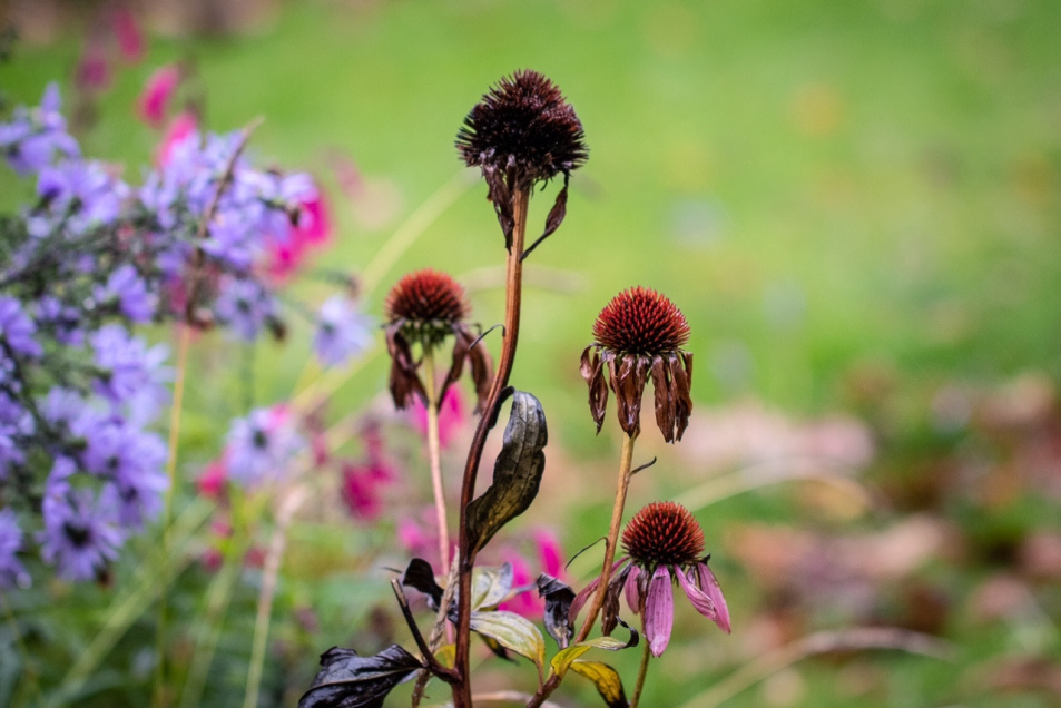 October 2019, images of late colours provided by Sarah Emslie, the central shot showing a bee nestling on the plant...evidence of increased biodiversity.