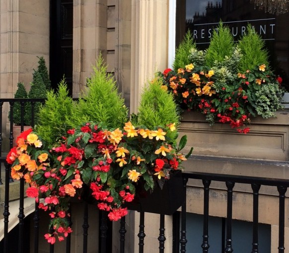 The Bonham Hotel demonstrating how beautifully colour and style can also be enjoyed outside of the Gardens, in this case on the Northern perimeter which can benefit from good sunlight, and the lovely floral displays are well maintained.